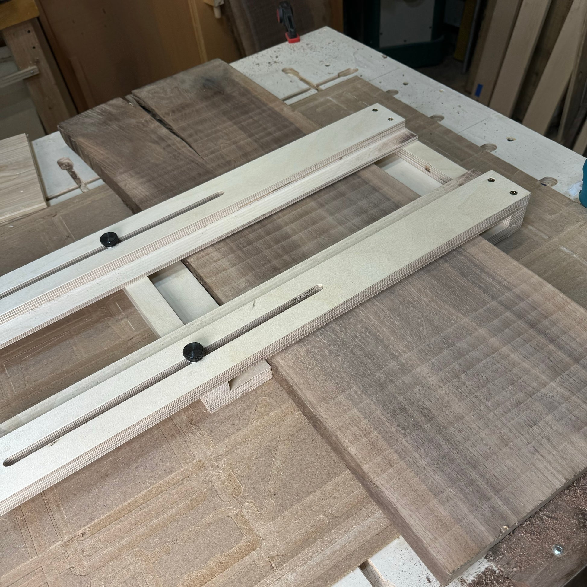 This is an updated and larger version of my trim router flattening jig! This version is 24" wide and will flatten pieces up to 21" wide with your compact trim router. The new version comes with 2 additional risers to increase the depth of material that can be flattened, up to 2" with the included pieces, but the design allows you to use standard 1/4 -20 screws or bolts to increase the size to whatever you need.