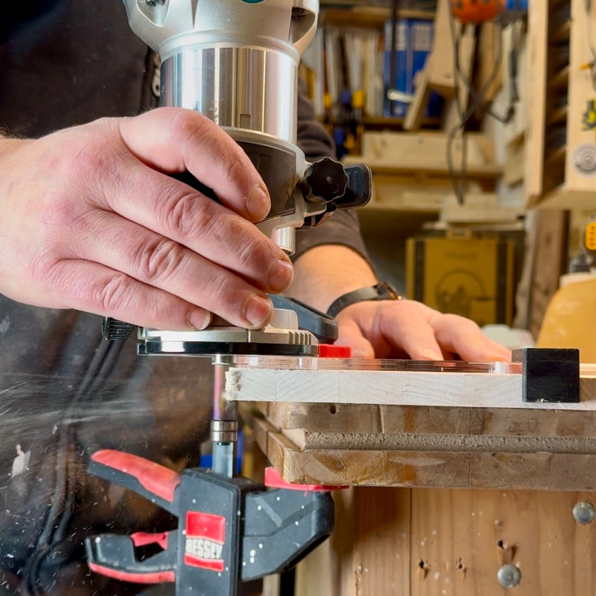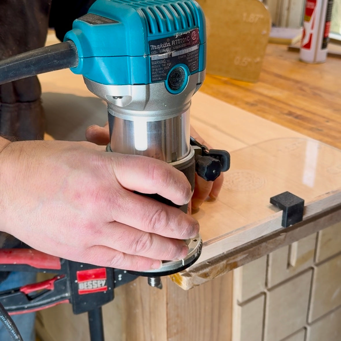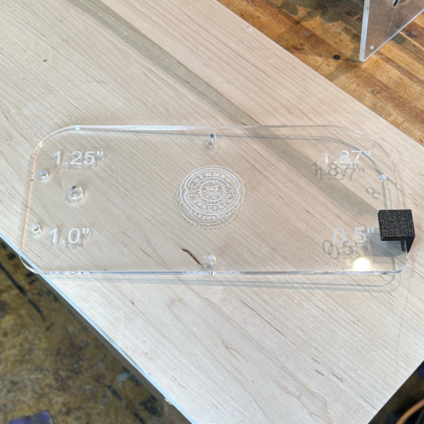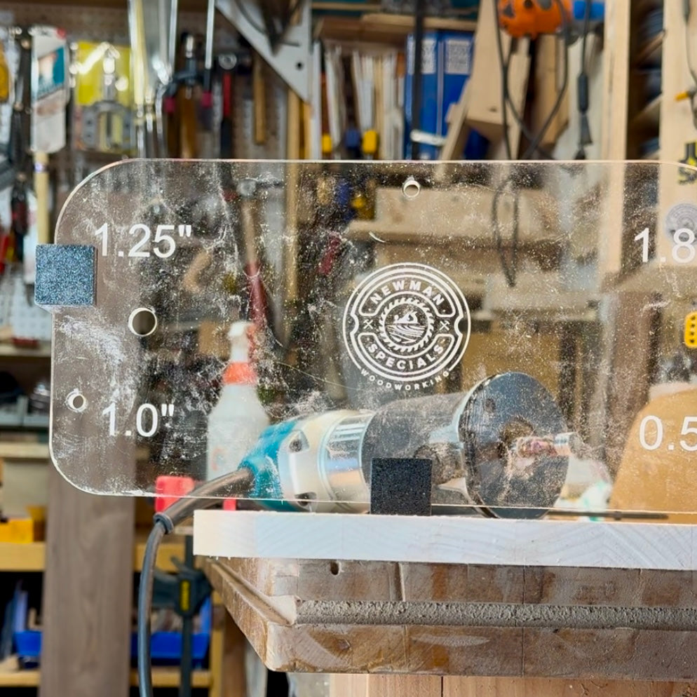 I made this template to help me round corners on tables and other pieces easily, rather than using a tape roll or some other random thing. I like to use a pattern bit with it and clamp it to the corner of the piece. this will help to ensure that all 4 corners are uniform and look professional. The 4 radii of the piece 0.5”, 1”, 1.25”, and 1.87”. custom templates are available if you want something else. For anything over 0.5” I will often cut the corner close to the pattern with a saw and then round it just to prolong bit life and make it safe for myself. The size of this pattern allows you to clamp it to the edges with clamps of your choice and then use a pattern bit to follow the edge and round the corner.